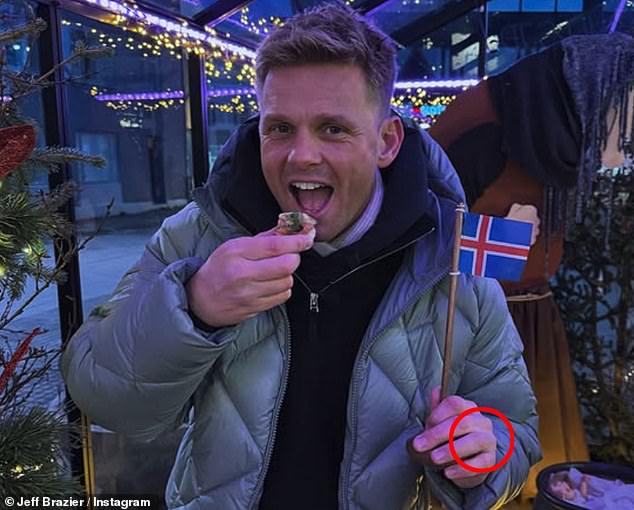Jeff, who is also father son Bobby, 22, was then seen without his wedding ring while reporting from Reykjavik on Monday’s GMB (pictured)