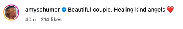 Her pal Amy Schumer wrote, ‘Beautiful couple. Healing kind angels ❤️.’
