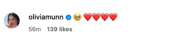 Olivia Munn and Leslie Mann both left heart emojis on the post.