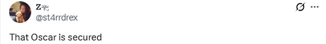 ‘Figured this was coming but I think Oscar voting closed before airtime,’; ‘That Oscar is secured.’