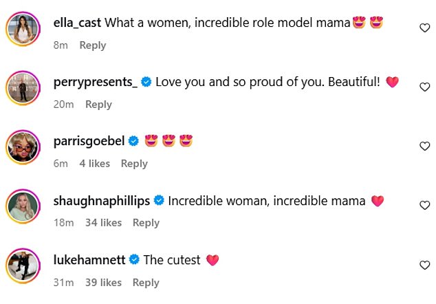 They wrote: ‘What a women, incredible role model mama; Incredible woman, incredible mama; 2011 Jesy would be so proud; Beautiful pictures and you look amazing;