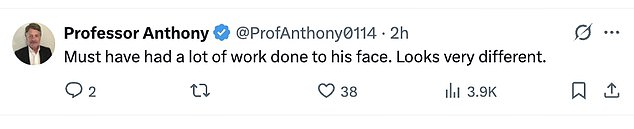 ‘Must have had a lot of work done to his face. Looks very different,’ one wrote.