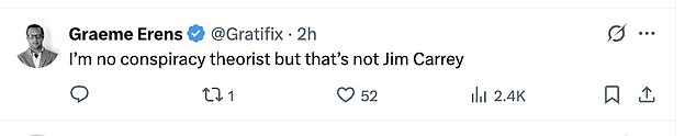‘I’m no conspiracy theorist, but that’s not Jim Carrey,’ commented another.