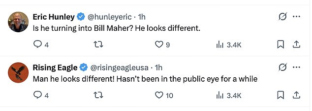 Some weren’t shy with comparisons, with one asking, ‘Is he turning into Bill Maher? He looks… different.’