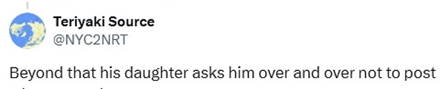 ‘His daughter asks him over and over not to post,’ one pointed out.