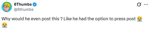 ‘Why would he even post this? Like he had the option to press post,’ another said.