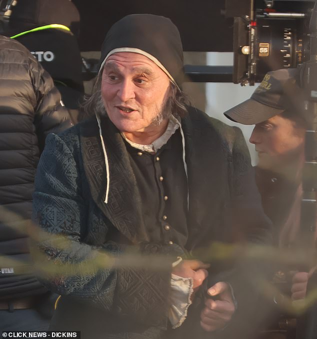 Johnny Depp was pictured for the first time in character as Ebenezer Scrooge as filming got under way in the UK on a new adaptation of A Christmas Carol