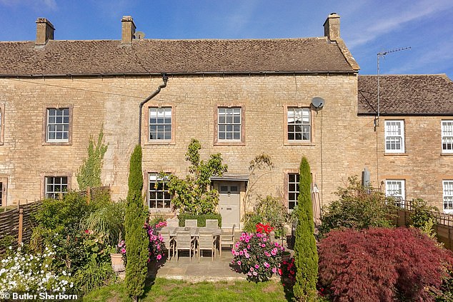 Sophie Salter, a partner at estate agency Butler Sherborn, which is selling the house, told This is Money: ‘This is a lovely welcoming Cotswold stone home. It is Grade II-listed and offers wonderful features, such as the sash windows, flagstone floors, fireplaces with wood burners and exposed beams.