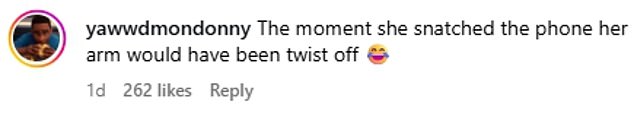 ‘The moment she snatched the phone her arm would have been twist off,’ one user wrote on Instagram.