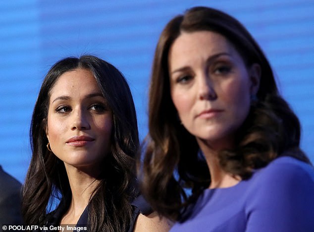 Relations between Meghan and Kate allegedly became frosty in the build up to the royal wedding – with Harry detailing in Spare how the two women disagreed over borrowed lip-gloss before the first Royal Foundation forum summit in February 2018 (pictured)