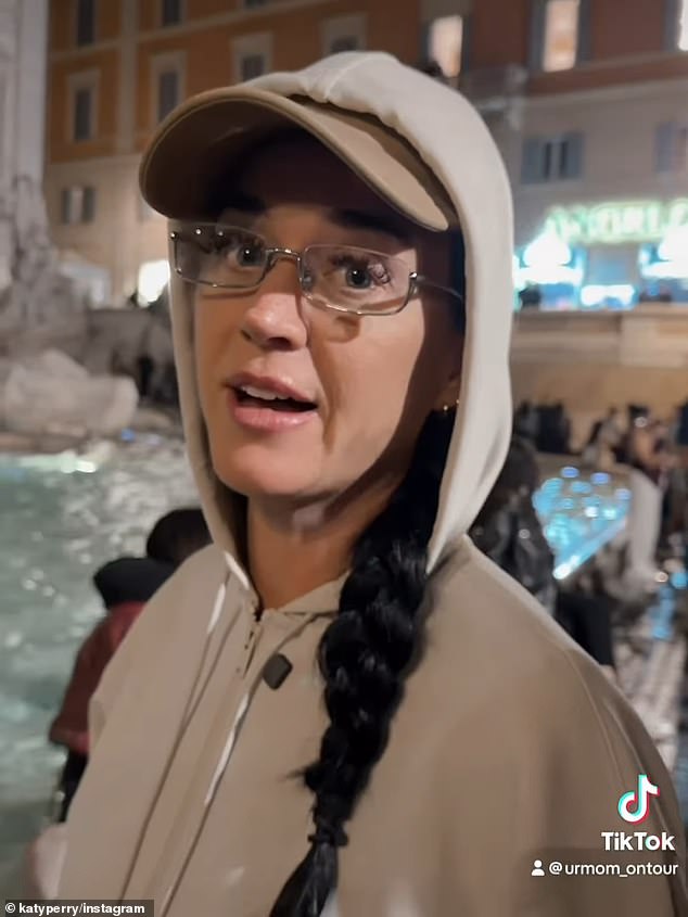 Katy Perry, 41, was pictured putting her credit card in the iconic Trevi Fountain while visiting Rome, Italy, in a video shared to her social media on Sunday