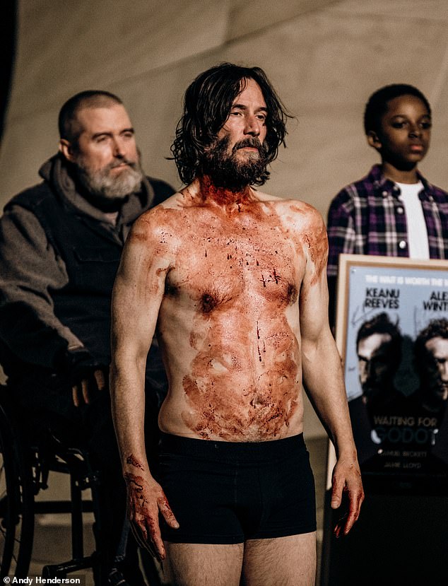 Keanu Reeves, 61, stripped down to his underwear while covered in fake blood during his latest Broadway performance