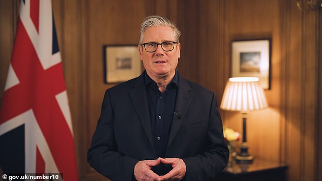 In a video message broadcast online on New Year’s Eve, Sir Keir said: ‘Things have been tough in Britain for a while. For many, life is still harder than it should be. You long for a bit more money in your pockets, a meal out, a holiday. The chance to make a special family moment extra special.