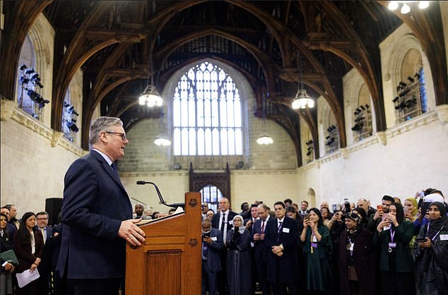 Speaking at the Iftar – an event to mark breaking the Ramadan fast – in Westminster Hall last night, Sir Keir said: ‘The war in the Middle East did not begin last week… in Gaza most of all, we must not lose sight of them and the need for peace, justice and security in Palestine and Israel.’