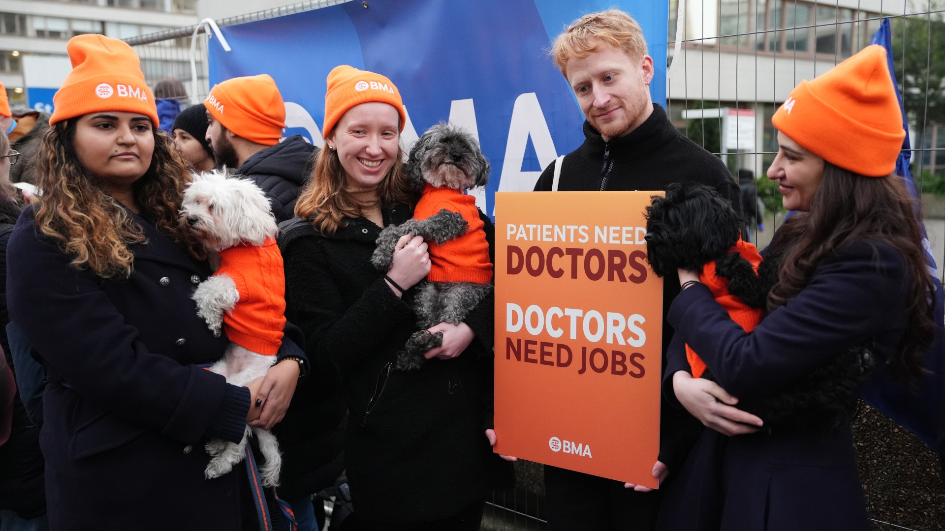 RESIDENT doctors are joined yesterday by their four-legged friends as five days of Christmas strike action gets under way.
