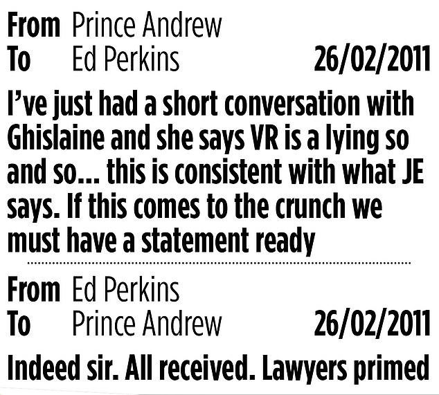 It comes after the Mail on Sunday exclusively revealed scandalous correspondence where the shunned prince told Epstein ‘we are in this together’ a day after the infamous picture of the royal with his alleged then–teenage sex victim Virginia Giuffre was released.