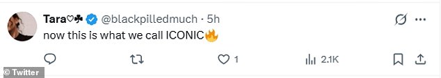 X users flooded the site to point out the stark differences between the pair, as their pairing was considered to have ‘crazy girlfriend, calm boyfriend energy’, while claimed he looked ‘sick of her’ – contrary to their steamy PDA through the night