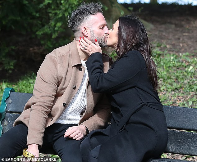 Kym Marsh put on a very loved-up display with her fiancé Tom Dickinson as the couple kisseD while going for a walk in a park on Saturday