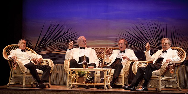 Monty Python stars Michael Palin, John Cleese, Eric Idle and Terry Jones perform the famous Four Yorkshiremen sketch