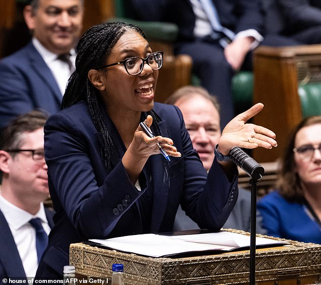 In the Commons, Kemi Badenoch said: ‘What’s he so scared of? He knows that he has misled Parliament so what he is doing is trying to cover up.’