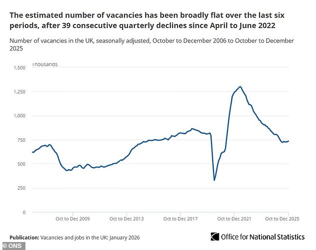 She added: ‘While there was a slight increase in vacancies in the latest period, the overall number has remained broadly flat over the last six months, following a long decline.