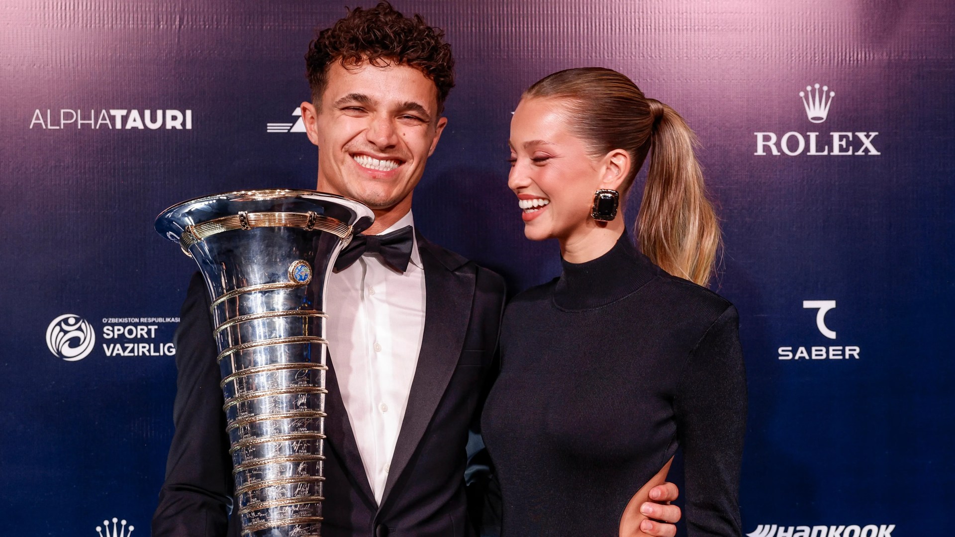 LANDO NORRIS and his supermodel WAG put on a cosy show on the red carpet at the FIA awards dinner.