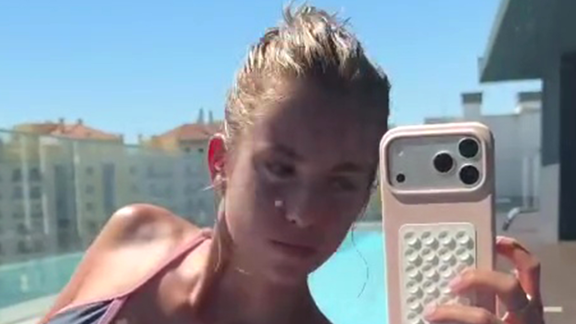 In a short video uploaded on Instagram, actor Corceiro is seen lying on a sunbed, recording herself in the mirror.