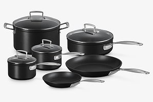 Items include cast iron cookware, stoneware crockery, dishes and even stainless steel pans.