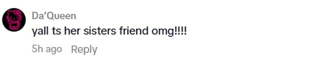 They wrote: ‘I think he’s a friend; yall its her sisters friend omg!!!!; Thats her sisters friend’.