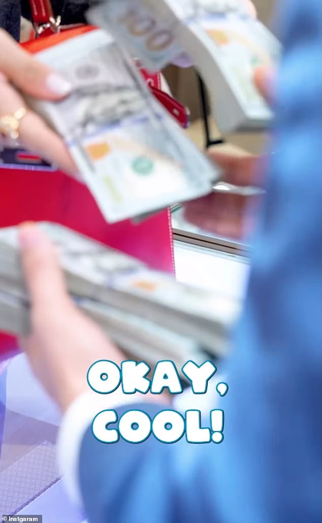 In a clip shared by the store to Instagram Lily paid for her pricey purchases with huge wads of cash that she was carrying in her $14,000 Hermès Birkin handbag.
