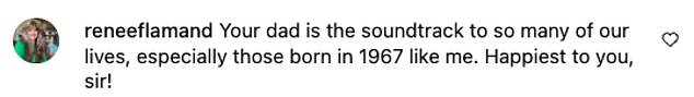 Fans were also quick to share their congratulations and wrote: ‘our dad is the soundtrack to so many of our lives, especially those born in 1967 like me. Happiest to you, sir!’.