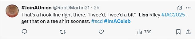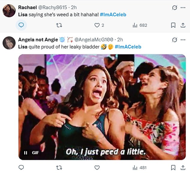 Others wrote: ‘Lisa saying she’s weed a bit hahaha!’; ‘Lisa quite proud of her leaky bladder’;
