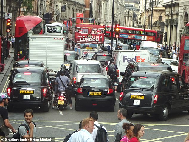 London (pictured) has been crowned the world’s worst capital city for traffic for the third year in a row, as revealed in a new report by TomTom