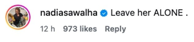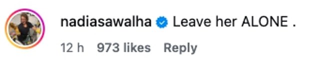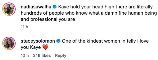 Nadia went on: ‘Kaye hold your head high there are literally hundreds of people who know what a damn fine human being and professional you are’.