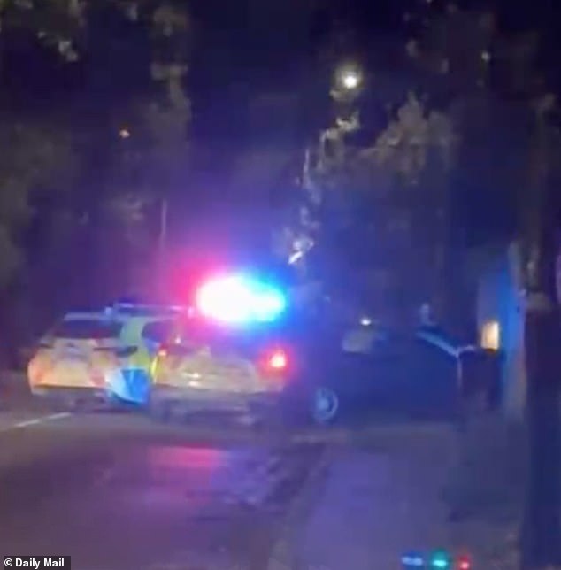A video taken by a nearby neighbour showed the abandoned suspect car parked at right angles in the driveway of a property, surrounded by police cars with blue lights flashing.