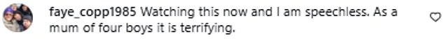 Sharing their thoughts on Louis’s latest deep-dive documentary, concerned parents wrote in the comments: ‘Watching this now and I am speechless. As a mum of four boys it is terrifying,’;