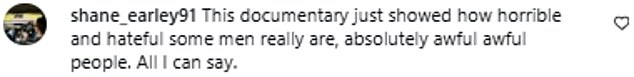 Elsewhere viewers branded the men studied in the documentary ‘disgusting and dangerous’ as they claimed their behavior was ‘insecurity amplified to terrifying levels’