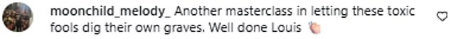 ‘Honestly it infuriated me. These people are disgusting and dangerous,’; ‘Another masterclass in letting these toxic fools dig their own graves. Well done Louis.’