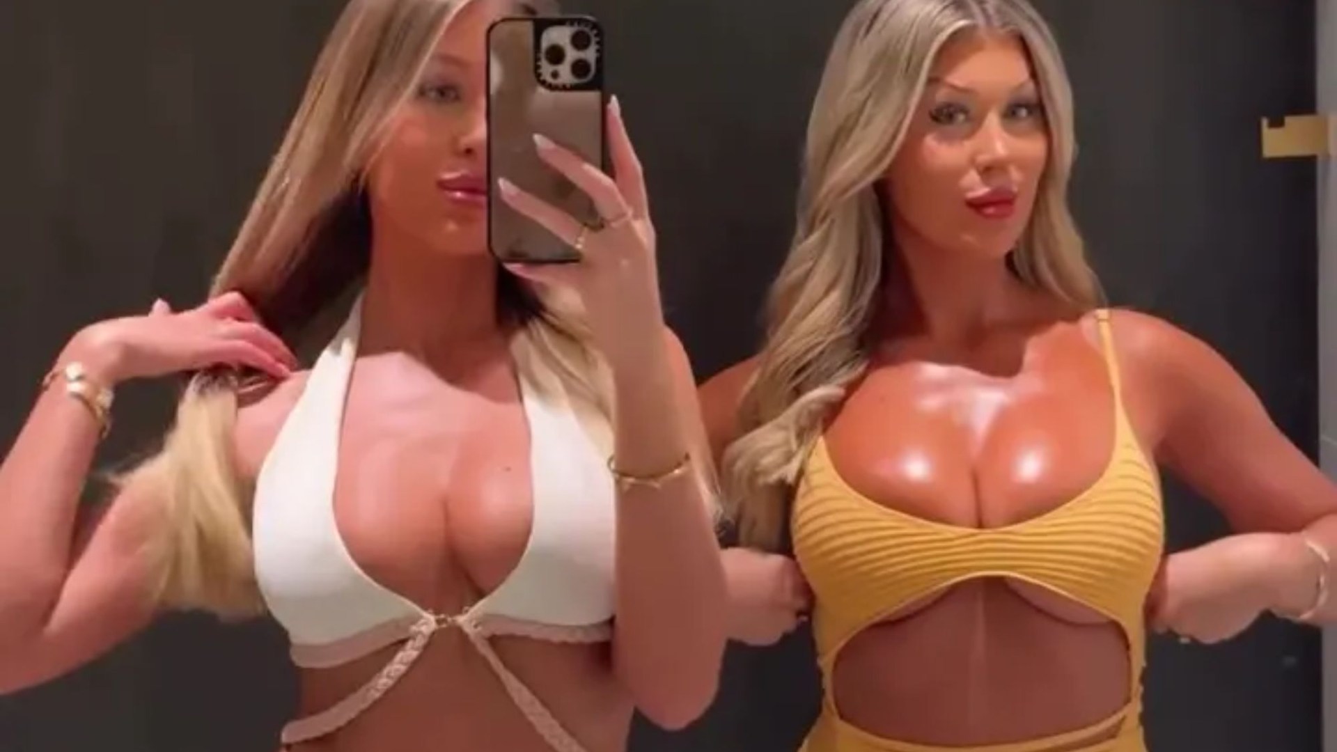 LOVE Island twins Eve and Jess Gale put on a sizzling display as they stripped to cut-out dresses for a night out.