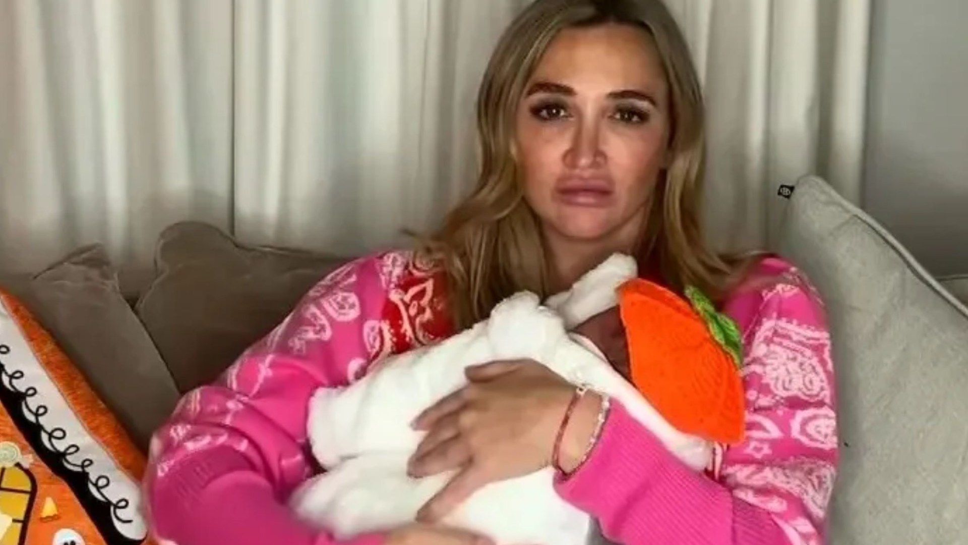 The new mum could be seen embracing the sweet tot, who was dressed in a white fluffy baby grow and a pumpkin hat.