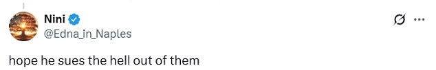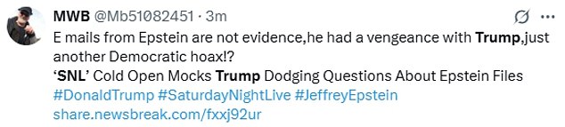‘You people are sick!’ one X user reacted to the five-minute satirical segment. ‘Hope [Trump] sues the hell out of them,’ another chimed in.
