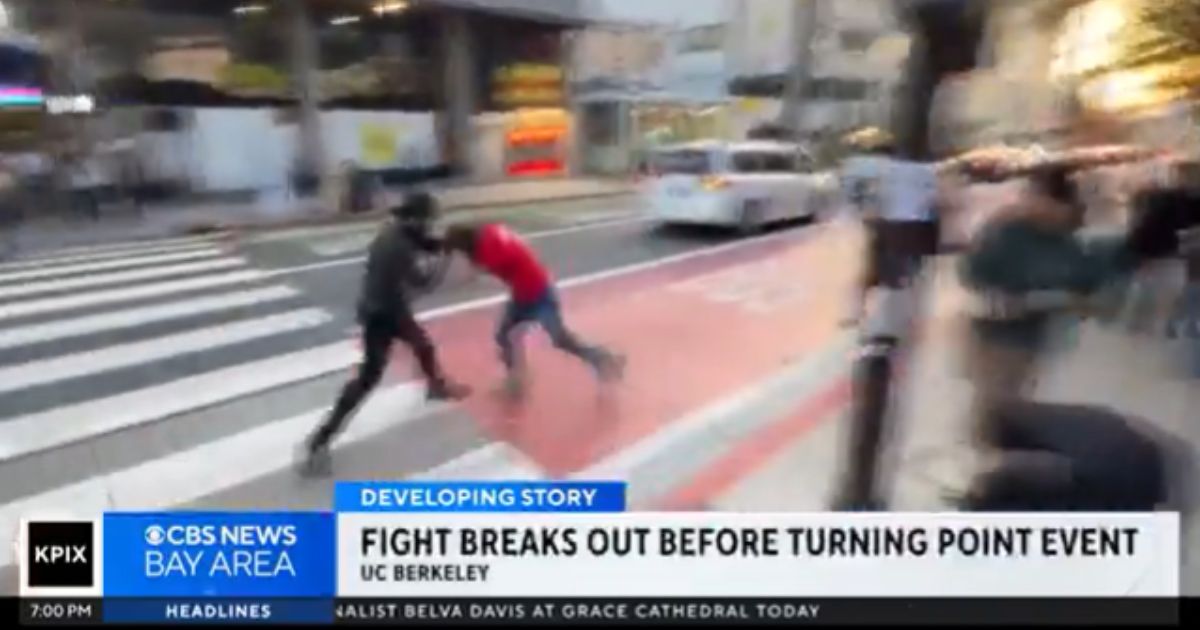 Notwithstanding evidence to the contrary, reporter Amanda Hari of KPIX-TV in San Francisco treated viewers to a familiar act of deception from the era of Black Lives Matter madness when, in a video report live from the scene, she characterized Monday’s protest outside a Turning Point USA event at the University of California-Berkeley as “mostly peaceful.”