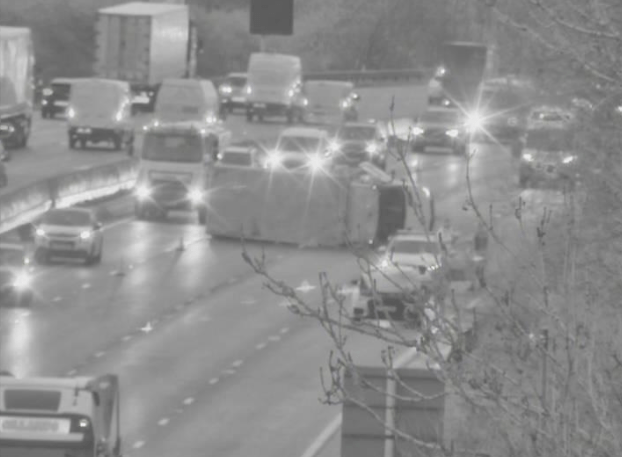 A VAN has overturned on a major motorway, causing traffic mayhem for drivers in rush hour.