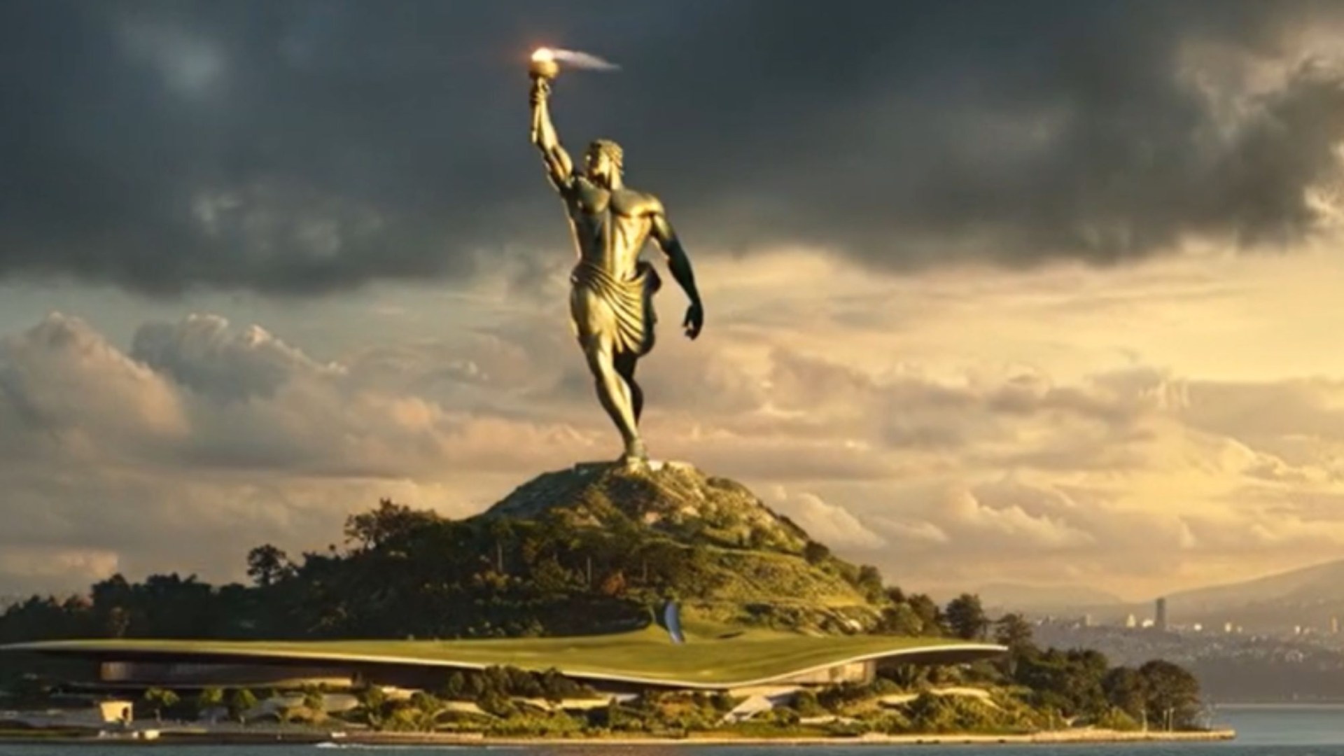 A close-up rendering of The Great Colossus of Prometheus on AlcatrazCredit: X @AmericaColossus