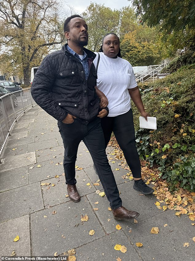 Lucius Njoku arrives at Chester Magistrates’ Court with his wife to be sentenced for fraud