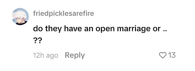 ‘Do they have an open marriage or .. ??’; ‘My husband or whoever lol’; ‘husband or whoever LOLOL.’