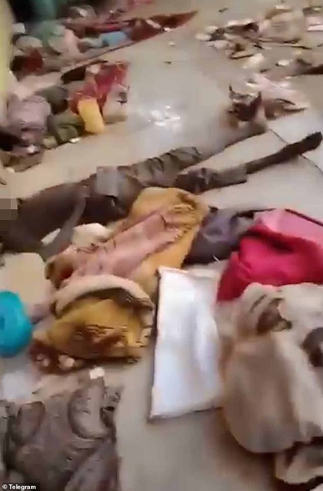 Footage purportedly showing the aftermath of the massacre captured bodies scattered across the floor amid debris