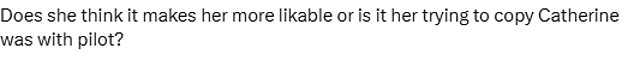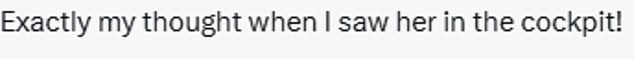A second said: ‘Exactly my thought when I saw her in the cockpit’, while a third added: ‘Is it her trying to copy the way Catherine was with the pilot?’