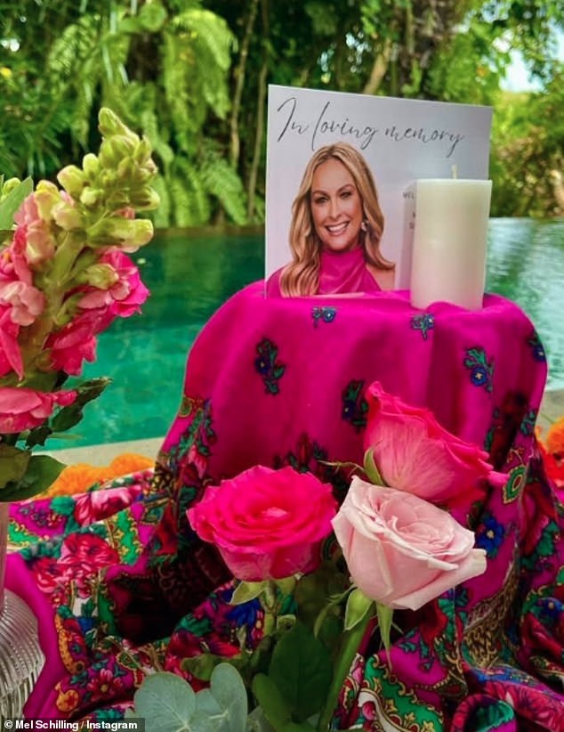 Before adding: ‘The photo of Mel in white is what we chose as her funeral photo. Equal parts glam, warmth and vulnerability which was her all over. Love and light to you all’.
