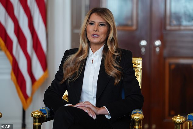 In a rare moment, dozens of members of the press were welcomed into the room at the conclusion of their meeting to hear remarks from Melania and the Siegels.